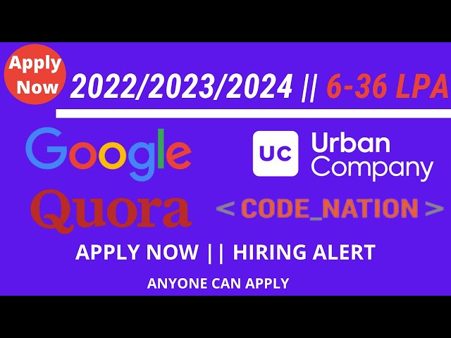 Google || Quora || Urban Company || Code Nation || Upto 36 LPA